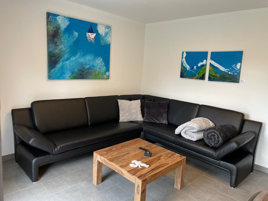 - Die Wohnküche ist voll ausgestattet. Kaffeemaschine, Wasserkocher, Mixer, Waffeleisen, Sandwichmaker, Geschirrspüler bis hin zum Induktionsherd mit Backofen. Sie beherbergt eine großzügige Ledercouch mit Kuscheldecken, einen Fernseher mit freiem Netflix-Zugang. Von dort aus gelangt Ihr auf die private Terrasse und in den gemeinschaftlichen Garten.